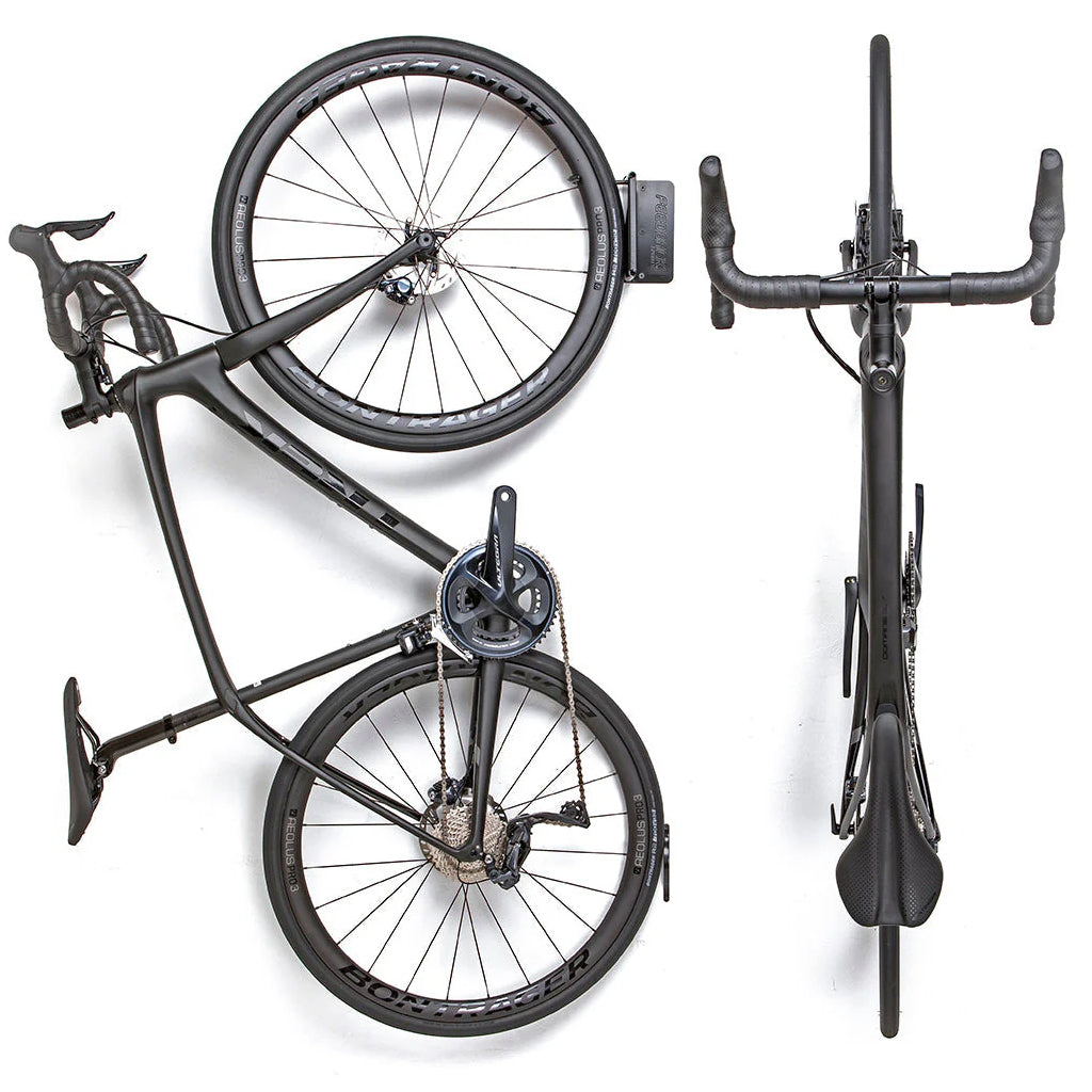 More than just a bike wall hook, the Velo Hinge is an innovative and elegant bike storage hook on a hinged plate to hang your bike by the front wheel and also allow it to safely swing sideways, to rest flat along the wall. Fitting almost any bike and swinging either left or right to match your needs, the Velo Hinge maximizes your space while showing love to your bicycles and your living space. And when not in use, it tucks away so you’ll hardly know it's there.