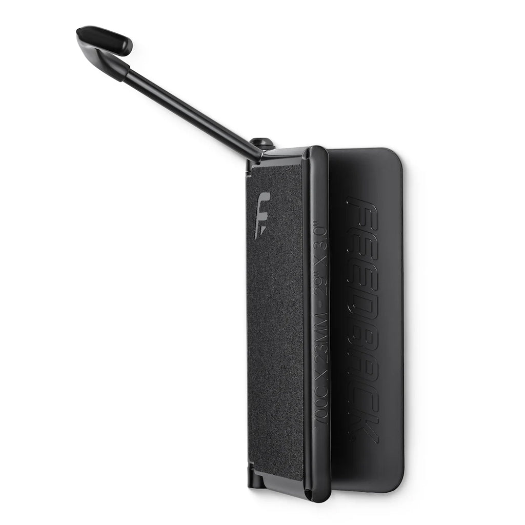 The Velo Hinge 2.0 wall mounted bike rack is made for modern bikes of all types. With a stiff, strong body and a long wheel hook to easily fit wide wheels and tires, the Velo Hinge design allows bikes to pivot for easy access to neighbouring bikes plus permits flat, space-saving bike storage along a wall. Grip tape on the tire contact plate adds stability. When not in use, the hook folds into the hinge for a clean aesthetic.