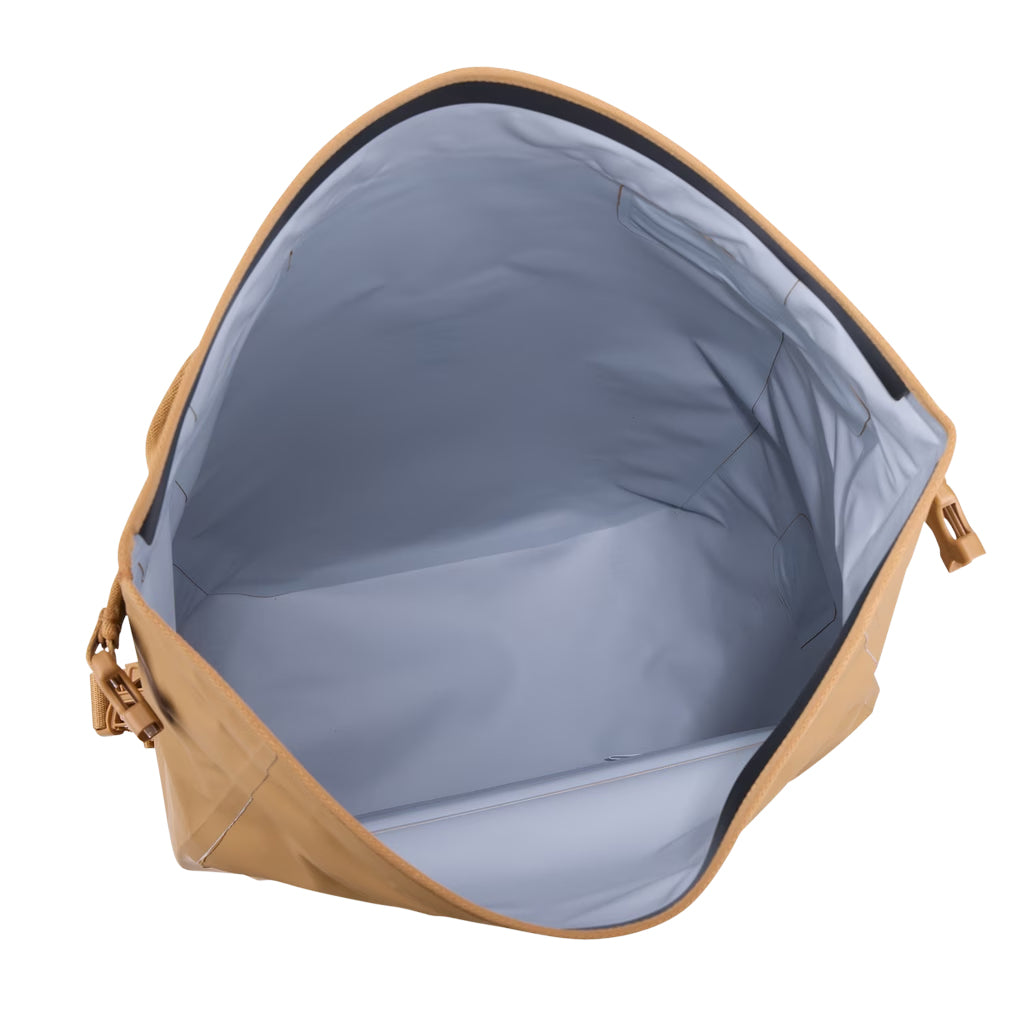 IPX4 waterproof rating with welded seams, roll-top closure, and durable, waterproof materials