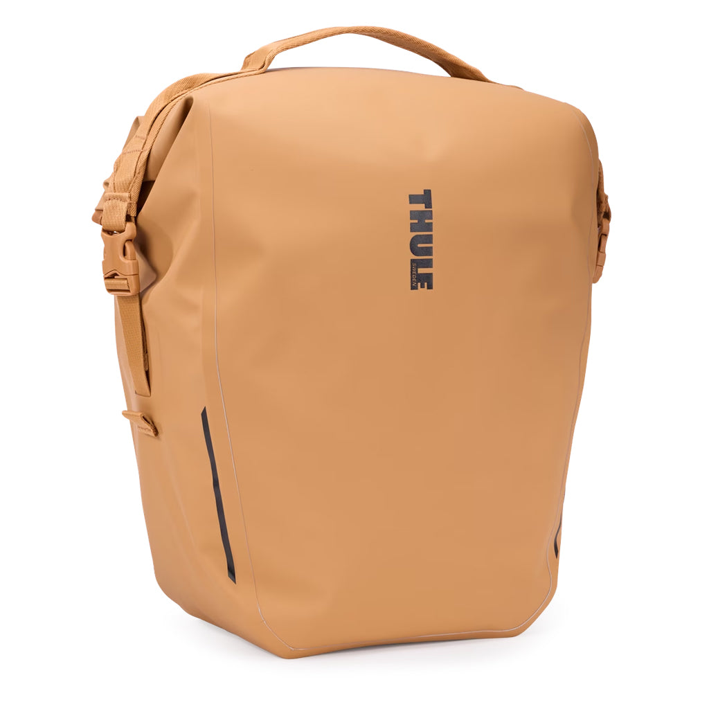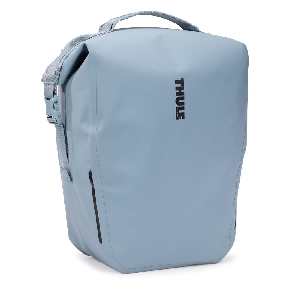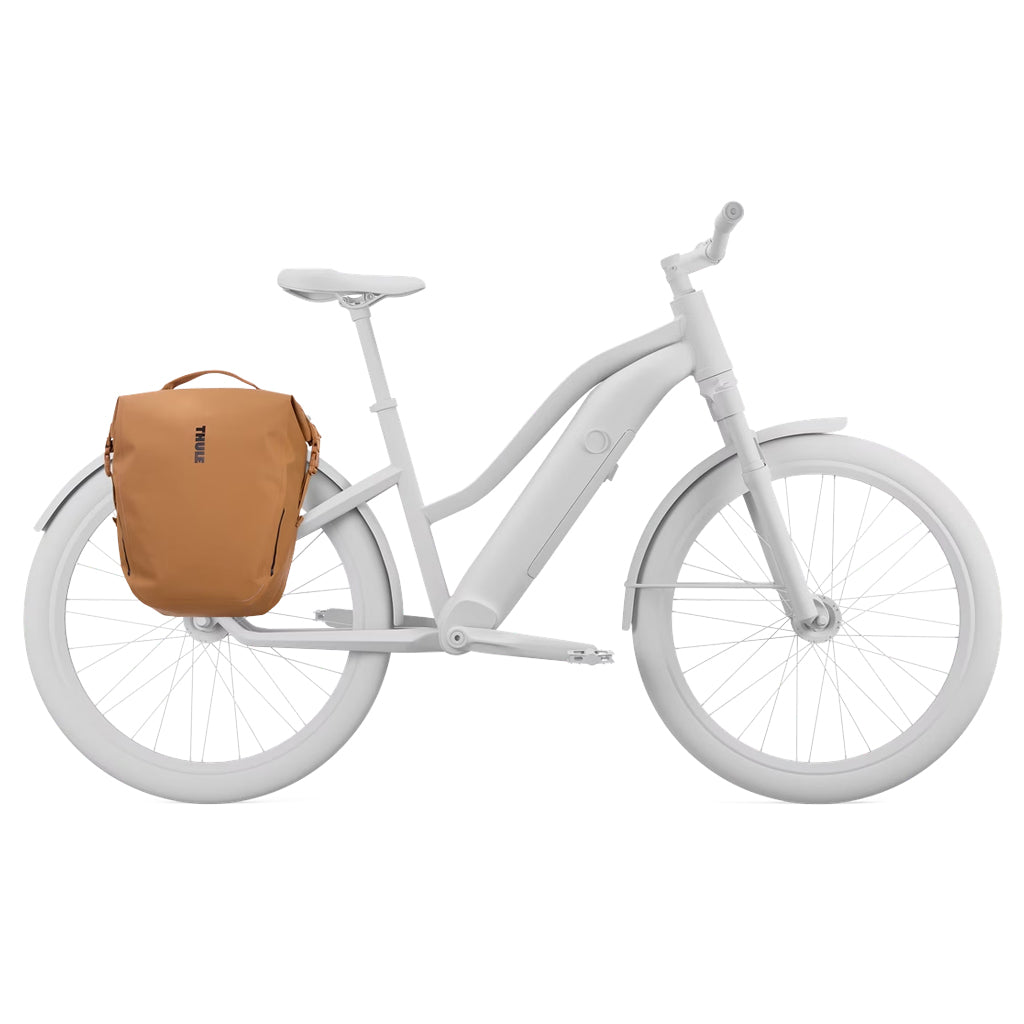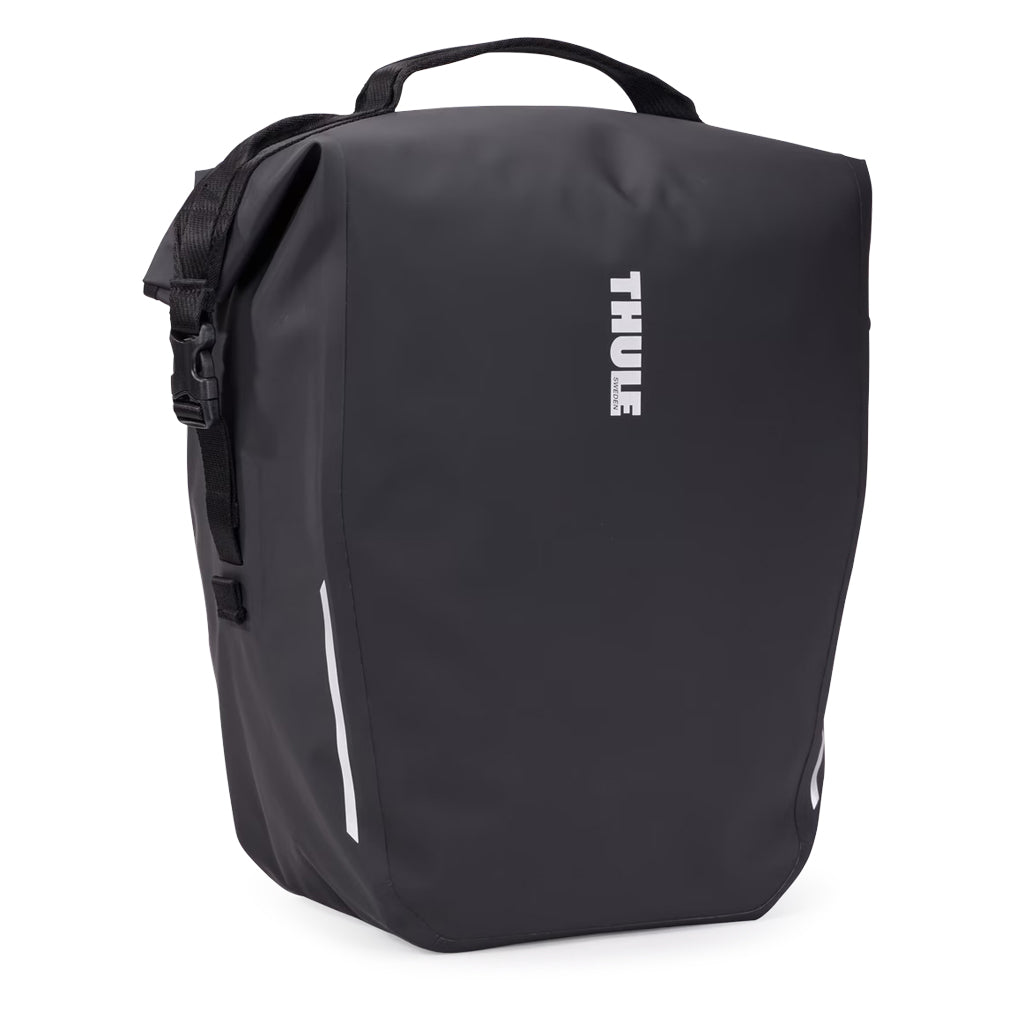 The roll-top Thule Shield Pannier 22L offers waterproof storage and a sleek, hardware-free design that makes it comfortable to carry off the bike. The IPX4-rated welded construction keeps your essentials protected, while reflective detailing enhances visibility on the road.