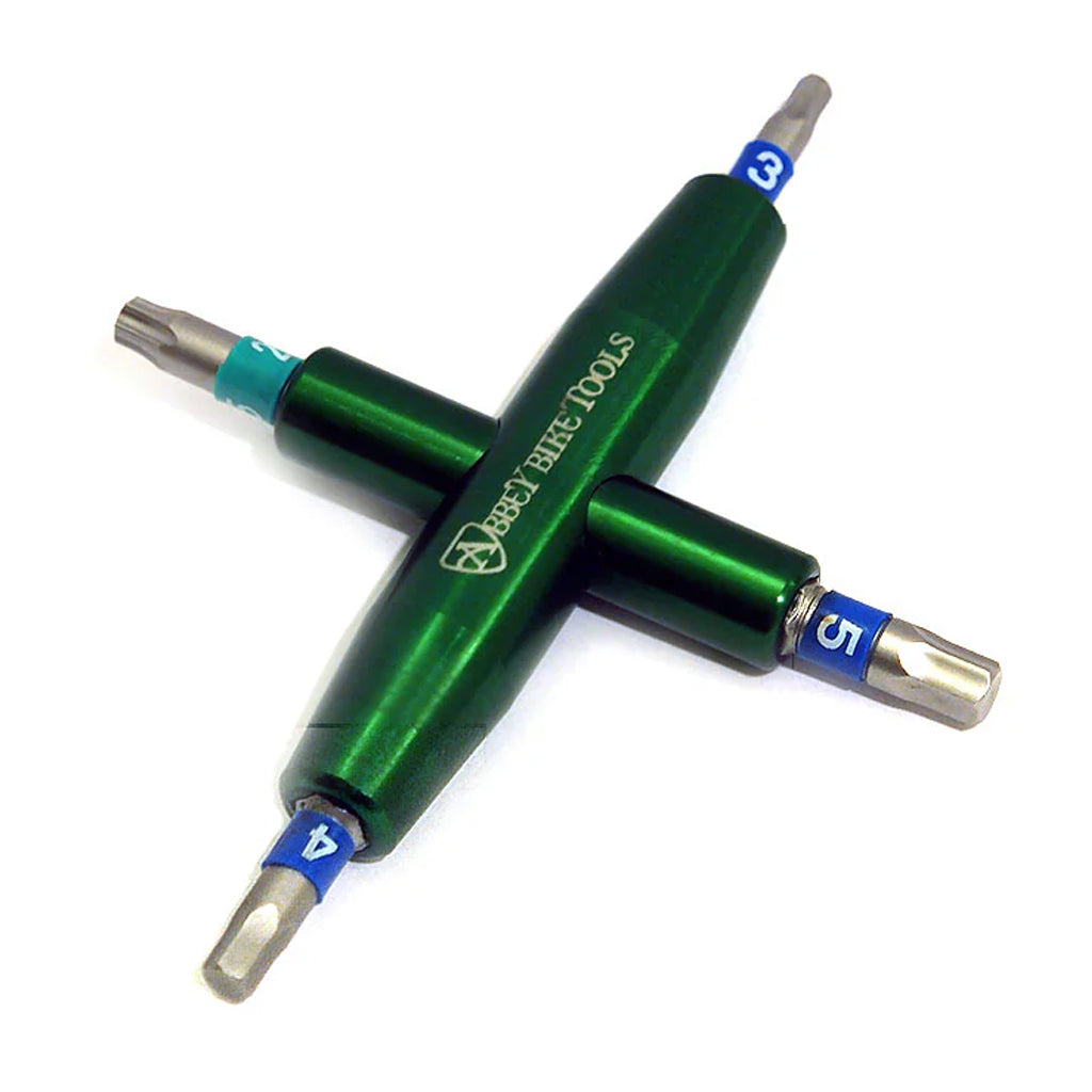Le multi-outil de précision 4-en-1 Abbey Bike Tools est le choix parfait à emporter lors de vos sorties à vélo. Nous avons conçu cet outil anodisé vert magnifique pour qu'il puisse se glisser dans une sacoche de selle compacte, un portefeuille de cycliste ou une poche de maillot.