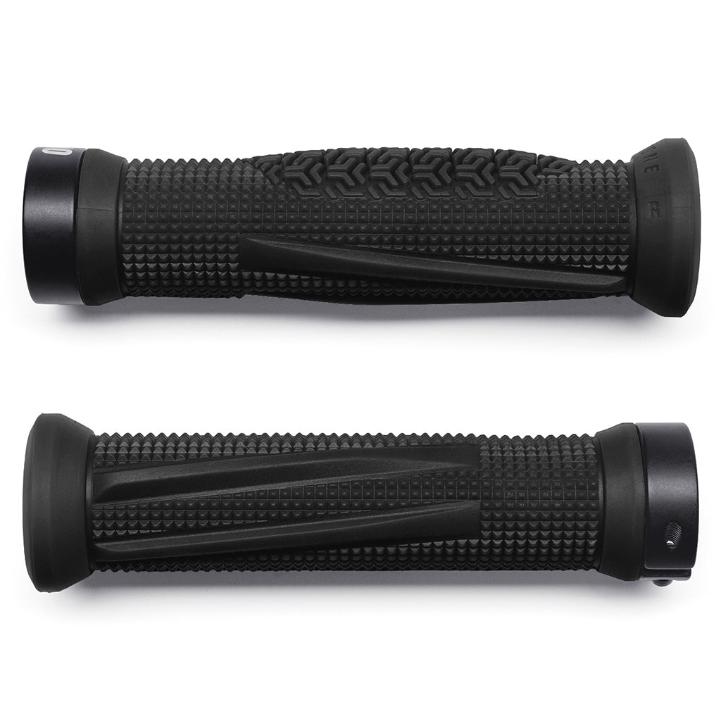 Les Poignées Goldstone possèdent une large bride extérieure qui empêche vos mains de glisser hors des extrémités. Jackson a choisi une forme en rampe sur les embouts pour lui offrir un appui lors des virages.