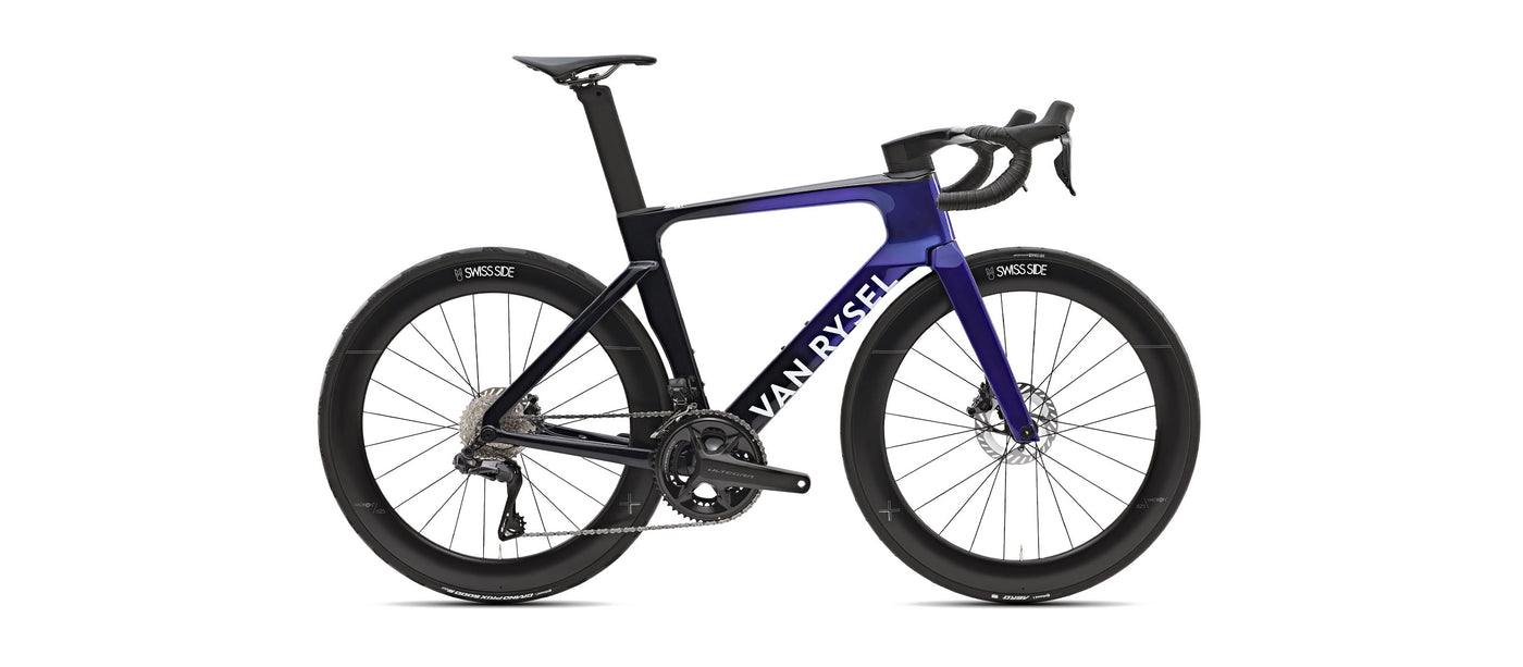 Mais ce vélo ne se résume pas à l'avantage aérodynamique — il est aussi conçu pour offrir une maniabilité précise et un transfert de puissance explosif. La superposition de carbone à module très élevé du RCR-F donne un avant 7 % plus rigide que celui du RCR Pro, vous permettant de sprinter, d'attaquer et de garder votre ligne en toute confiance. Malgré son ambition aérodynamique, le vélo reste léger et agile, affichant un poids d'environ 8 kg en version Shimano 105 Di2 ou même plus proche de 7,5-8 kg dans les versions plus haut de gamme. Chaque pièce, du poste de pilotage Deda x Van Rysel aux roues Swiss Side Hadron² et aux Continental tubeless-ready, a été choisie ou conçue pour équilibrer vitesse, contrôle et confort de roulage.
