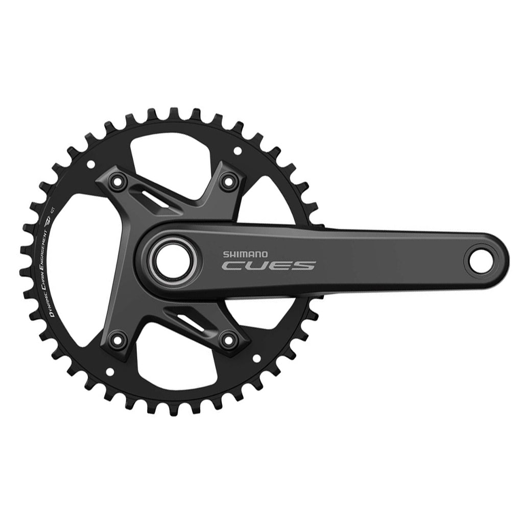 The SHIMANO CUES HOLLOWTECH II Front Single Crankset offers superior chain retention and a stiff yet lightweight design, boosting confidence on long road and gravel rides. DYNAMIC CHAIN ENGAGEMENT+ improves chain engagement and retention with its special gear tip shape, ensuring smooth riding over rough terrain.