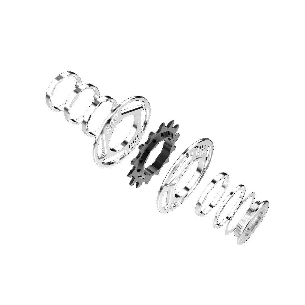 The Single Speed Kit delivers a clean, reliable single speed setup for your dirt jumper or DH bike. Featuring a durable 13T cog and precision CNC-machined alloy spacers and guide plates, this kit allows for accurate chainline adjustment and secure drivetrain alignment. Designed for Shimano HG freehubs (not compatible with Sram XD), each component is built to withstand consistent use and abuse. Simple, durable, and purpose-built for riders who want fewer parts and zero distractions.