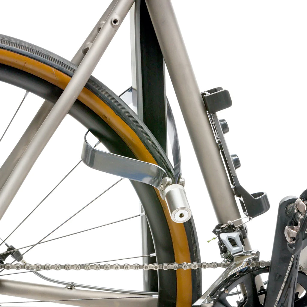 - Can I lock bike frame and a wheel to a bike rack? Yes, in most cases, but not all. The shackle shape is compact and optimized for locking bike frame to bike rack. The mini shape is well suited for the Sheldon Brown method of locking rear wheel through rear triangle to bike rack as shown above.