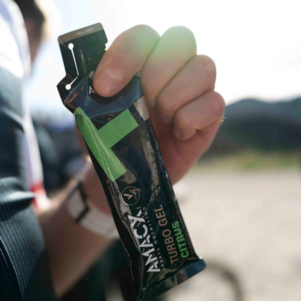 Amacx Turbo Gel is a ready-to-use sports gel to which water has already been added. This gel contains several carbohydrate sources with a gradual release (1:0.8 carbohydrate ratio). Also available in the Cola Lime and Cassis Caffeine flavours.